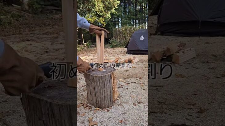 初心者キャンパー 初めての薪割り #short